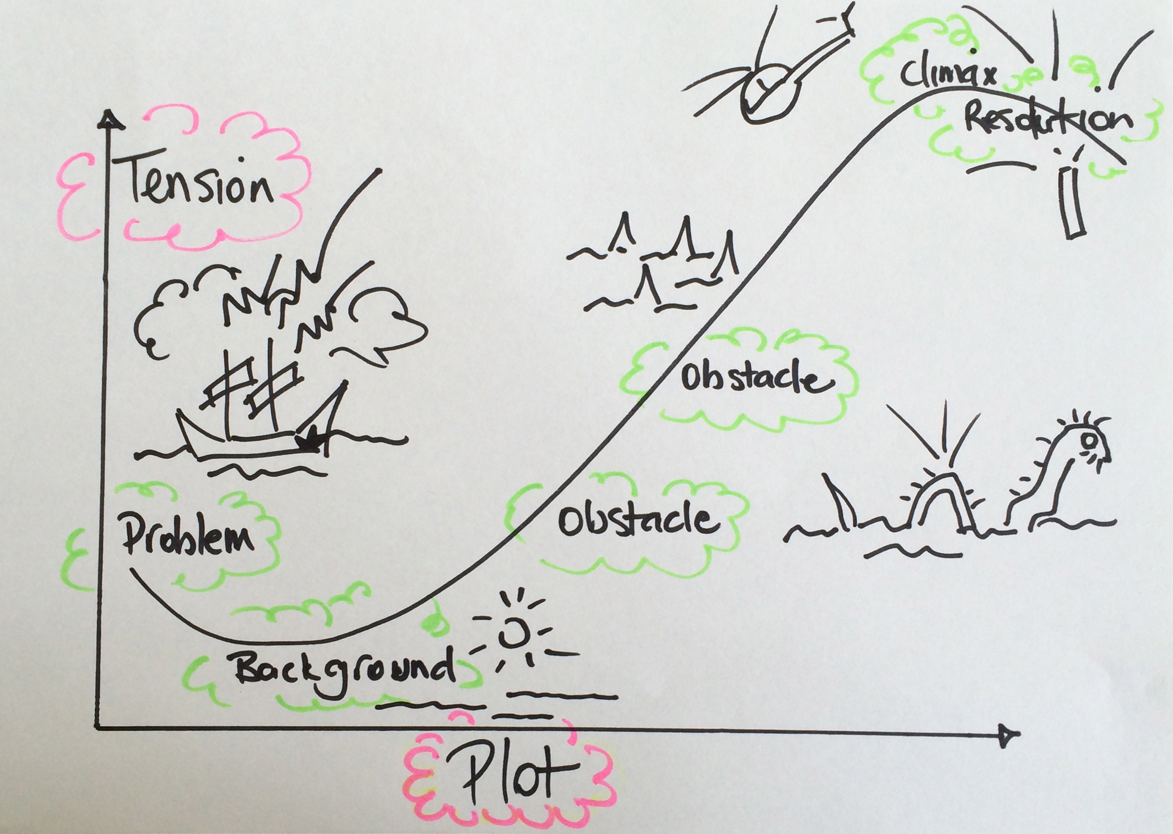 - Map out a plan for your story – starting with a problem and adding obstacles and building to a climax and a final resolution.