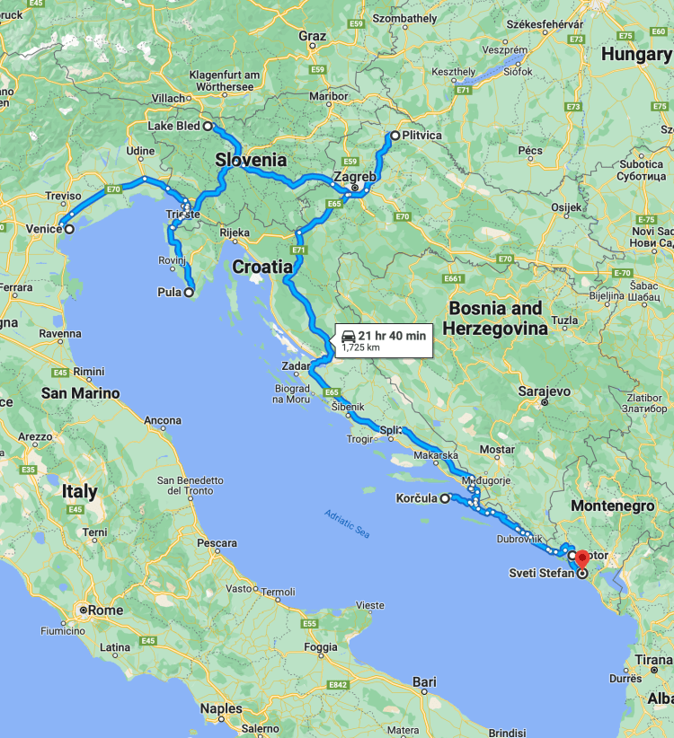A cruise is the obvious choice for visiting the Adriatic, but Mr F and I are spending three weeks on the road – visiting Italy, Slovenia, Croatia and Montenegro. We sip sparkling rosé on the walls of Ljubljana Castle, row around a fairytale church on Lake Bled, pick fresh figs on the island of Korcula, explore Blue caves in the Bay of Kotor, climb medieval fortifications, and dice with death on a mountain road.
