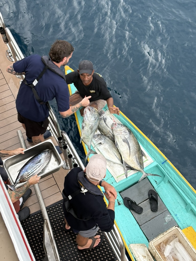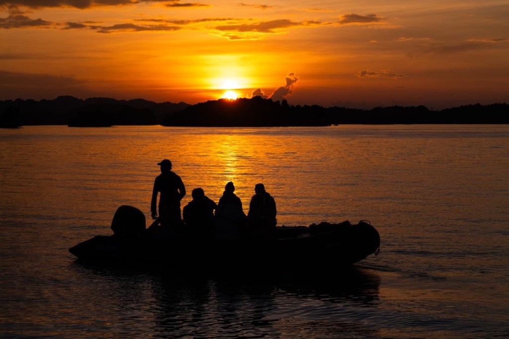Reminders of colonial times are spread across the island of Banda Neira, but the vibe is considerably more chilled these days. We are welcomed by a traditional kora kora canoe escort and treated to a concert in the old Belgica fort. Sipping a glass of prosecco as the sun sets behind the island’s volcano is a special way to end another incredible day.
