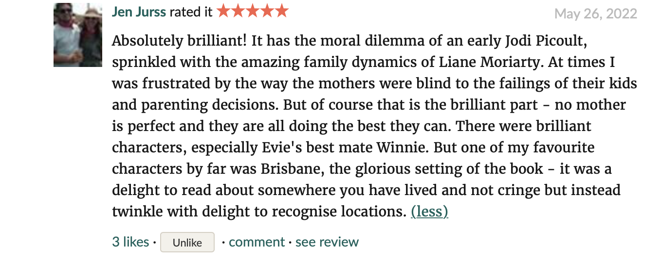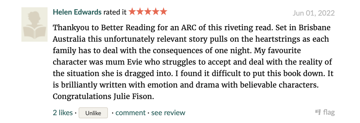 Don’t be misled by its title, this is not a dark and depressing book. It is full of warmth and understanding for the complexities of mothers of boys, family life and social issues. Julie Fison has achieved that rare thing – an entertaining book that is incredibly thought-provoking.
